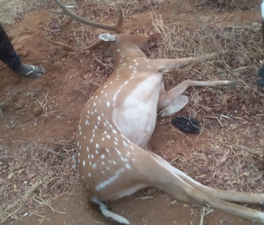 திருச்சி மாவட்டம் துறையூர் அடுத்த உப்பிலியபுரம் காவல் நிலையத்திற்கு உட்பட்ட கிருஷ்ணாபுரம் பிரிவு சாலையிலிருந்து ஒட்டம்பட்டி கிராமத்திற்கு செல்லும் சாலையில் சுமார் 2 வயது மதிக்கத்தக்க கிளைமான் அடையாளம் தெரியாத வாகனம் மோதிய விபத்தில் உயிரிழந்து கிடப்பதாக துறையூர் வனத்துறையினருக்கு தகவல் கிடைத்தது.தகவலறிந்து சம்பவ இடத்திற்கு சென்ற வனத்துறையினர் உயிரிழந்து கிடந்த மானின் உடலை மீட்டு பிரேத பரிசோதனை செய்து வனப்பகுதியில் அடக்கம் செய்தனர்.