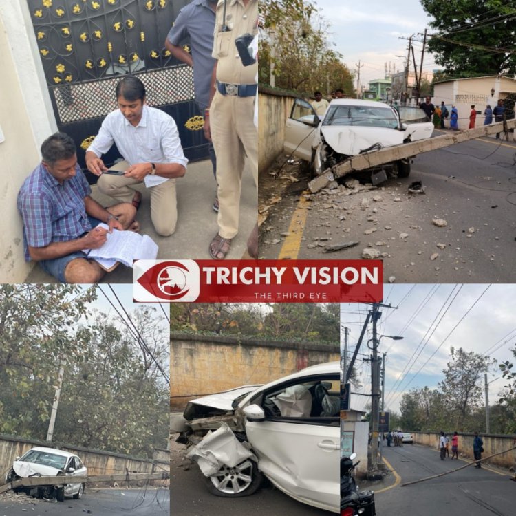 அப்போது மத்திய பேருந்து நிலையம் அருகே வ உ சி சாலையில் அதிவேகமாக வந்த போது அங்கிருந்த மின்கம்பம் மீது மோதி கார் விபத்துக்குள்ளானது. இதில் மின்கம்பம் இரண்டாக உடைந்து சாலையில் விழுந்தது இதனால் அப்பகுதியில் மின் துண்டிப்பு ஏற்பட்டது.