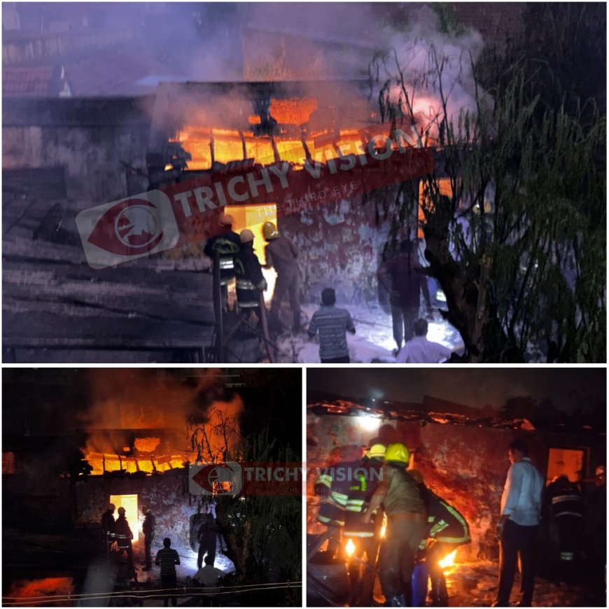தொடர்ந்து தீயணைப்புத் துறையினர் தீ விபத்து குறித்து விசாரணை மேற்கொண்டு வருகின்றனர். இந்த தீ விபத்து தொடர்பாக திருச்சி பாலக்கரை காவல் நிலைய காவல்துறையினர் உரிமையாளர் கமாலுதீனை அழைத்து விசாரணை மேற்கொண்டு வருகின்றனர்.