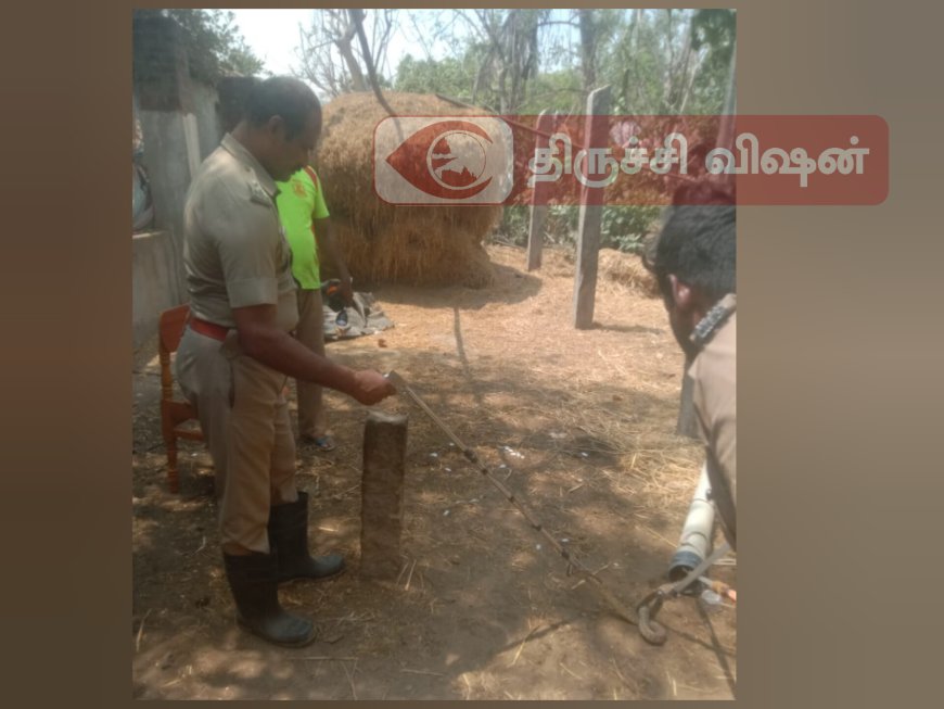 திருச்சி மாவட்டம் லால்குடி அருகே கூகூரைச் சேர்ந்தவர் மாலதி சுரேஷ் தம்பதினர். இவர்கள் விவசாயம் வேலை செய்து வருகின்றனர். இவர்கள் வீட்டில் கூண்டு வைத்து புறா வளர்த்து வருகின்றனர். இந்நிலையில் இன்று இந்த புறாக் கூண்டுக்குள் 5 அடி நீளமுள்ள நல்லப்பாம்பு புகுந்தது.