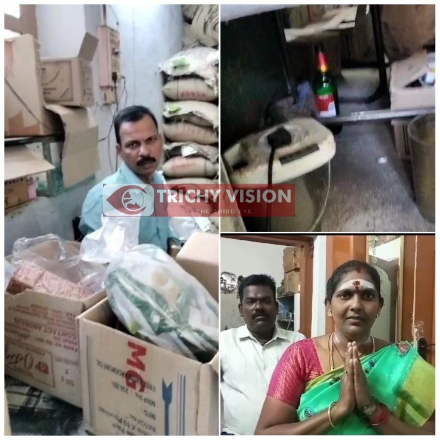 திருச்சியைச் சேர்ந்த சசிகலா என்பவர் தனது கணவர் தவச்செல்வனுடன் திருச்சி புத்தூர் நால்ரோடு அருகில் உள்ள சிந்தாமணி வளாகத்தில் உள்ள சிந்தாமணி கூட்டுறவு நியாய விலை கடையில் அரிசி வாங்க சென்றுள்ளார்.
