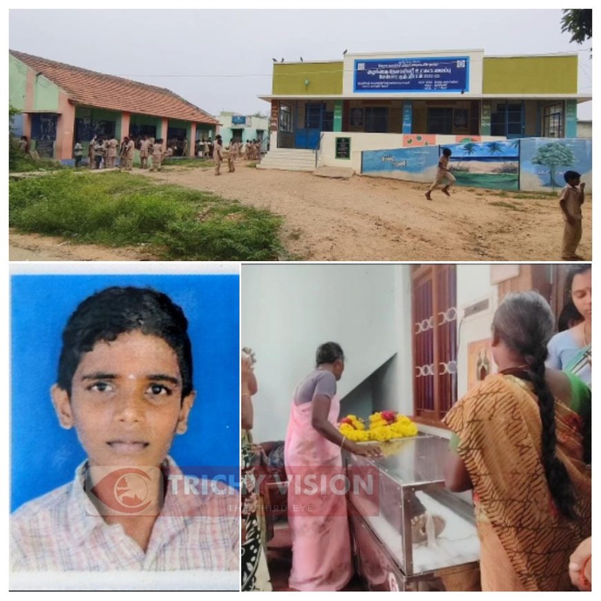 திருச்சி மாவட்டம், லால்குடி அருகே உள்ள தச்சன் குறிச்சி பெருமாள் கோவில் தெருவை சேர்ந்த முருகானந்தம் மகன் வெற்றிவேலன் (13). இவர் அதே பகுதியில் உள்ள ஊராட்சி ஒன்றிய நடுநிலைப்பள்ளியில் எட்டாம் வகுப்பு படித்து வந்தார்.