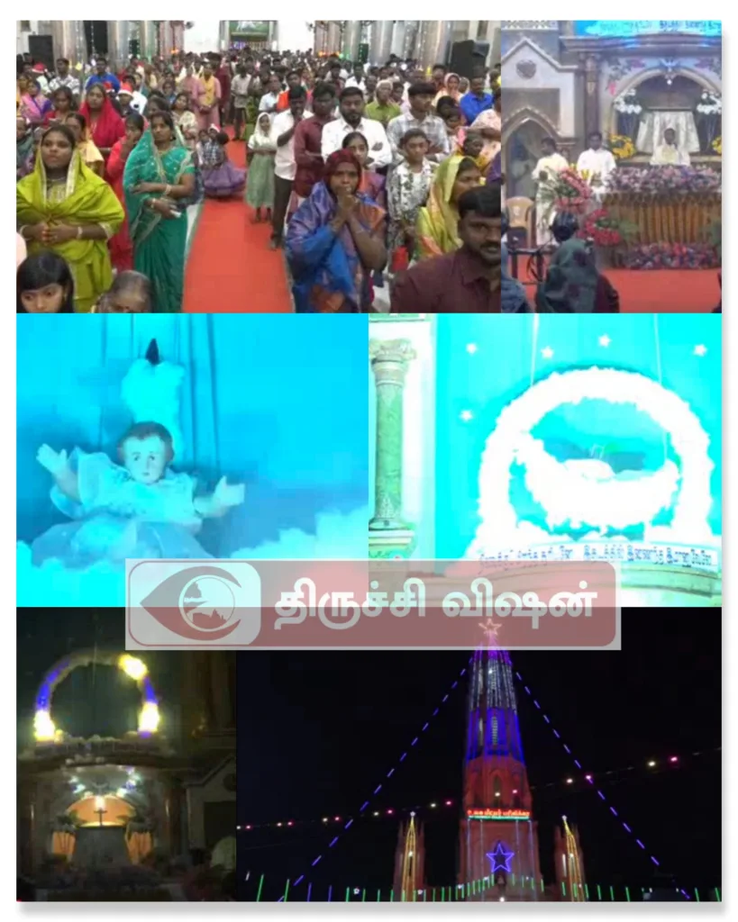 மண்ணில் தோன்றிய புனிதராம், அன்பும், கருணையும் மட்டுமே தாரகமந்திரமாகக் கொண்டு இவ்வுலகில் மனிதரில் புனிதரால் வாழ்ந்துகாட்டிய இயேசுபிரான் இப்பூவுலகில் அவதரித்த தினமாகும். உலகம் முழுவதும் கிறிஸ்துமஸ் கொண்டாடப்பட்டு வரும் நிலையில் கிறிஸ்துமஸ் விழாவையொட்டி திருச்சியில் உலக மீட்பர் பசிலிக்கா, மேலப்புதூர் தூய மரியன்னை பேராலயம், குழந்தை இயேசு திருத்தலம், புனித அந்தோணியார் ஆலயம், புனித சூசையப்பர் ஆலயம், உள்ளிட்ட ஏராளமான கிறிஸ்துவ ஆலயங்களில் இன்றுஇரவு சிறப்பு திருப்பலிகள் நடைபெற்றது.
