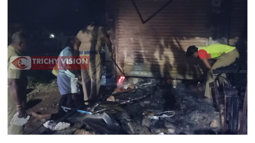 திருச்சி மாவட்டம் முசிறி பழைய பேருந்து நிலையத்தில் தனியார் காம்ளக்ஸில் தங்கும் விடுதி அமைந்துள்ளது. விடுதியின் கீழ்தளத்தில் பழக்கடை, உணவகம் போன்ற கடைகள் அமைந்துள்ளது. இந்நிலையில் நள்ளிரவு மலையப்பபுரம் பகுதியை சேர்ந்த பெரியசாமி (54) என்பவரின் பழக்கடையில் திடீரென தீ பற்றியது.