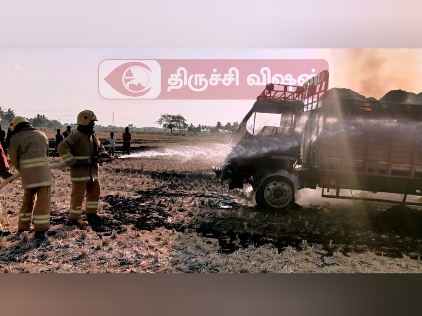 தகவல் அறிந்த புள்ளம்பாடி தீயணைப்பு நிலைய அலுவலர் செந்தில்குமார் தலைமையில் சிறப்பு நிலைய அலுவலர் சிவக்குமார் மற்றும் வீரர்கள் ரமேஷ் குமார், கனகராஜ், தரனிதரன், ஜானி, பிரகாஷ் உள்ளிட்டோர் சம்பவ இடத்திற்க்கு விரைந்து சென்று சுமார் ஒரு மணி நேர போராட்டத்திற்கு பின் தீயை அணைத்தனர். இந்த தீ விபத்தில் லாரி மற்றும் வைக்கோல் கட்டுகள் எரிந்து சேதமடைந்தது. இந்த தீ விபத்து குறித்து லால்குடி போலீசார் வழக்கு பதிவு செய்து விசாரணை செய்து வருகின்றனர்.