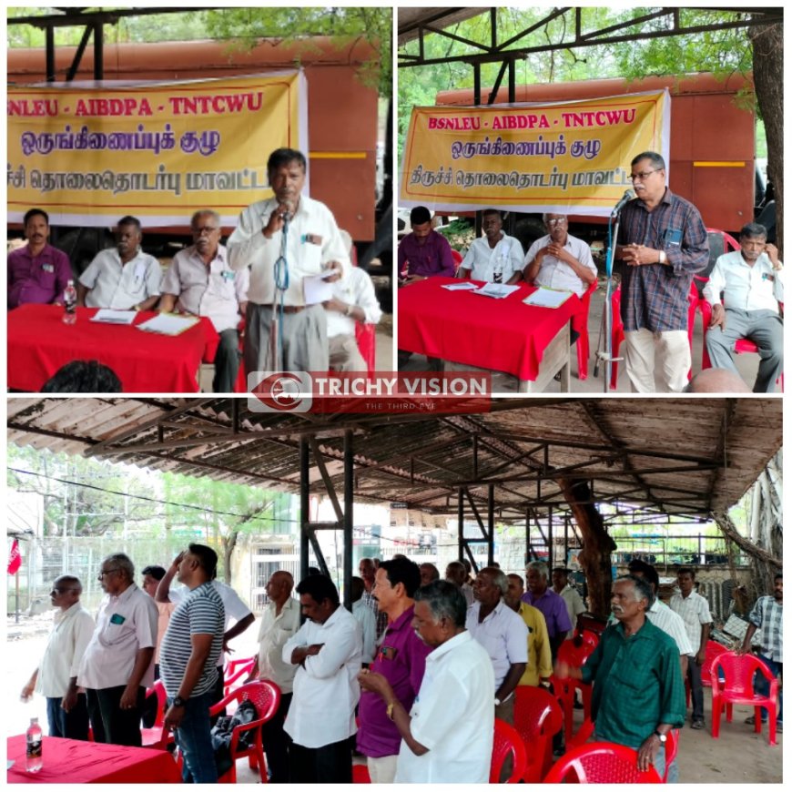 விளக்கவுரை 1.S.அஸ்லம் பாஷா BSNLEU மாநில பொருளாளர், 2.A.இளங்கோவன் AIBDPA திருச்சி மாவட்ட (பொறுப்பு) செயலாளர், 3. D.தேவராஜ் AIBDPA மாநில அமைப்பு செயலாளர், நன்றியுரை G.முபாரக்அலி TNTCWU மாவட்ட செயலாளர் மற்றும் BSNLEU/AIBDPA/TNTCWU