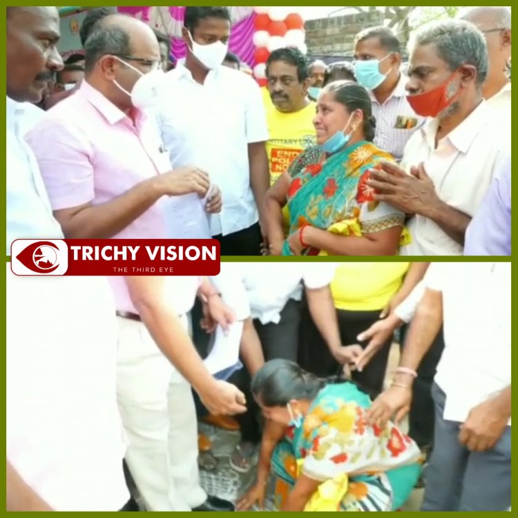 இன்று(27.02.2022)திருச்சி பெரிய மிளகுபாறை பகுதியில் உள்ள ஆரம்ப சுகாதார நிலையத்தில் நடைபெற்ற போலியோ சொட்டு மருந்து நிகழ்ச்சியில் கலந்து கொள்ள வந்த மாவட்ட ஆட்சியர் சிவராசுவின் காலில் விழுந்த ராஜேஷின் தாய் ஜெயலட்சுமி தனது மகனை எப்படியாவது மீட்டு தரவேண்டும் என கேட்டுக்கொண்டார்.