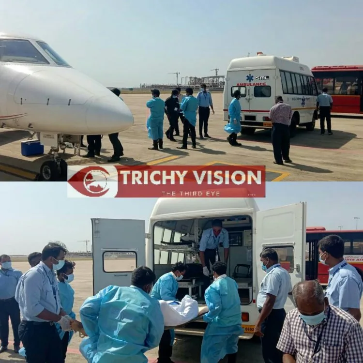 புதுக்கோட்டை மாவட்டம், அறந்தாங்கி தாலுகா மணல்மேல்குடி கிராமத்தை சேர்ந்தவர் லட்சுமணன் (36). சிங்கப்பூரில் பணியாற்றி வந்த நிலையில் இவர் பக்கவாத நோயினால் பாதிக்கப்பட்டதால், உயர் சிறப்பு சிகிச்சைக்காக சிங்கப்பூரில் இருந்து தனியார் ஆம்புலன்ஸ் விமானம் மூலம், திருச்சி விமான நிலையத்திற்கு கொண்டு வரப்பட்டார்.
