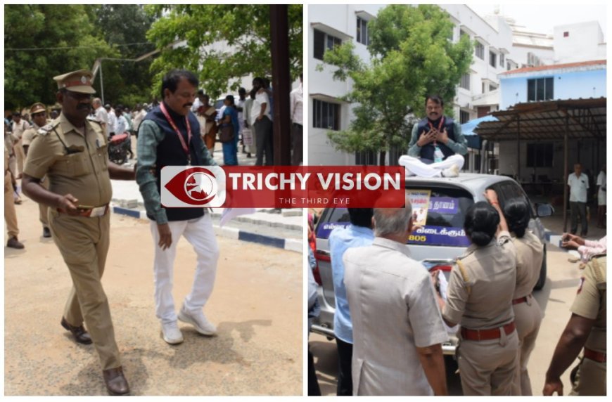 திருச்சி மாவட்ட ஆட்சியர் அலுவலகத்திற்குள் கார் மீது ஏறி போராட்டத்தில் ஈடுபட்ட நபரால் பரபரப்பு