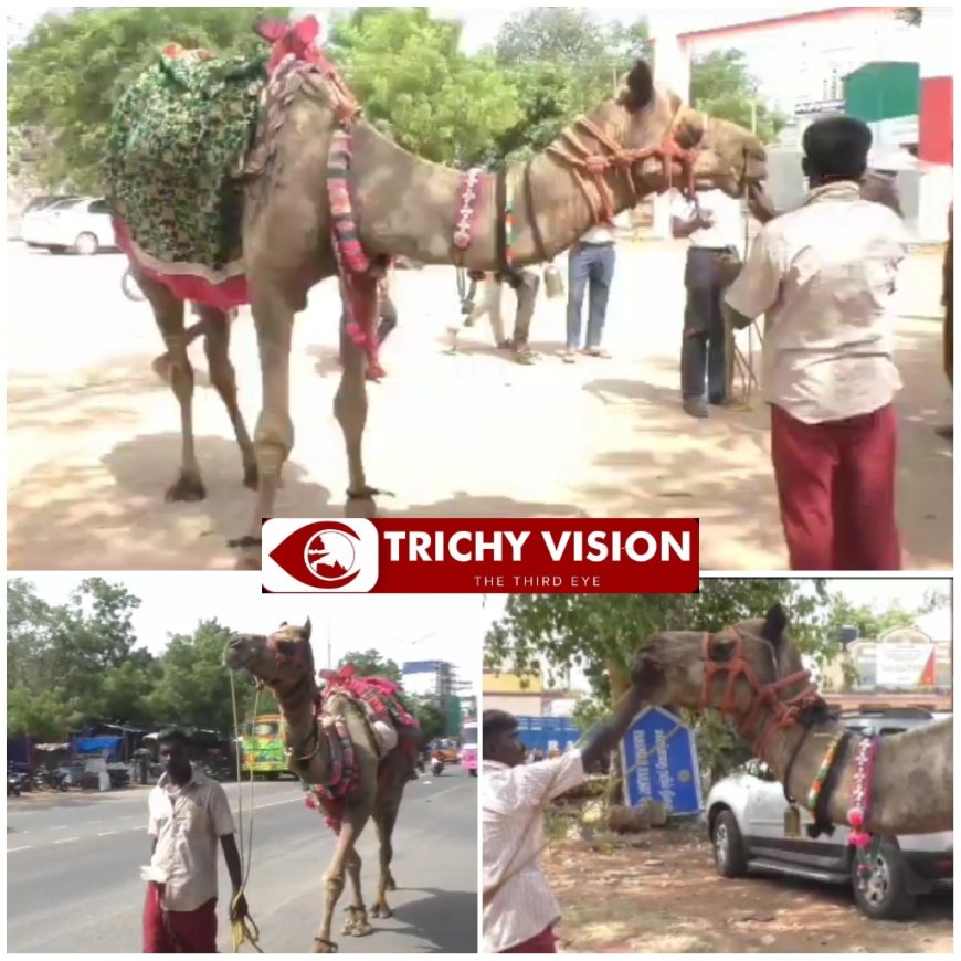 திருச்சியில் ஒட்டகத்தை வைத்து யாசகம் பெற்ற நபர் – எச்சரித்த போலீசார்
