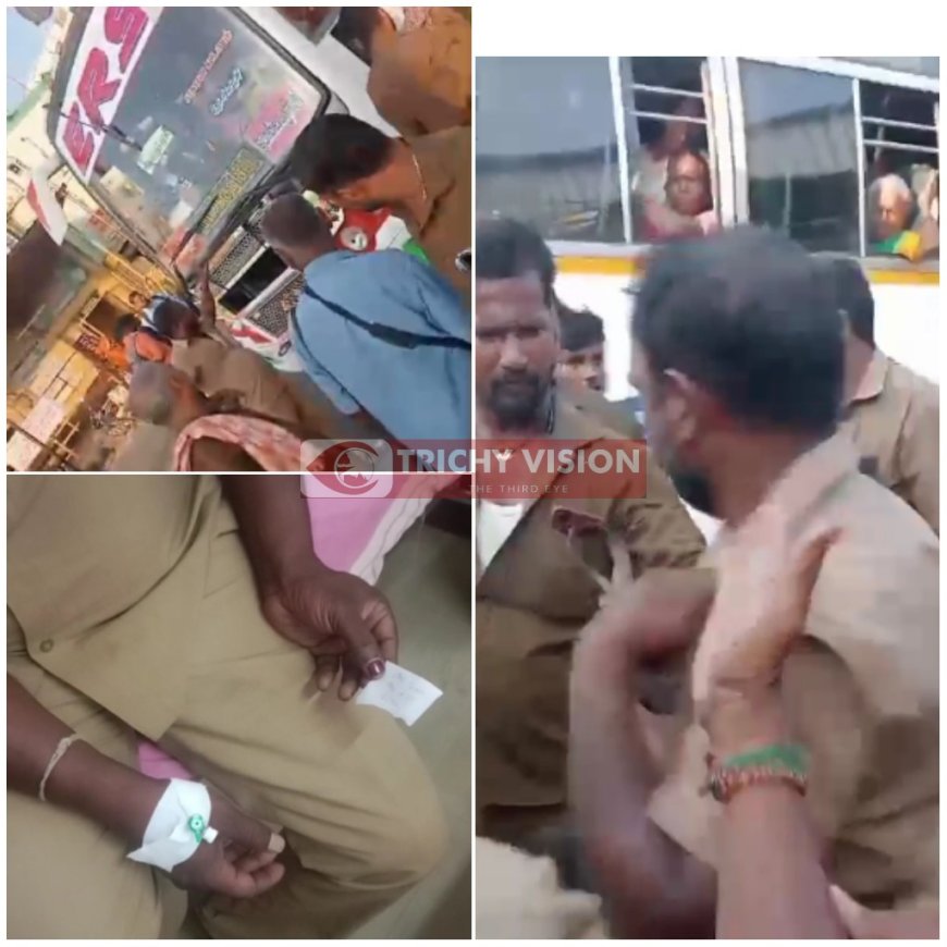பின்னர் இதுக்குறித்து அரசு பேருந்து ஓட்டுனர் முருகானந்தம் திருச்சி கண்டோன்மென்ட் காவல் நிலையத்தில் புகார் கொடுத்துள்ளார். இதனை தொடர்ந்து அரசு பேருந்து மத்திய பேருந்து நிலையத்தில் நின்றது. தாக்குதலுக்கு ஆளான அரசு பேருந்து நடத்துனர் திருச்சி அரசு மருத்துவமனையில் சிகிச்சை பெற்று வருகிறார். ஏற்கனவே அரசு பேருந்து நடத்தினருக்கு முதுகு தண்டுவட பாதிப்பு உள்ள நிலையில், தற்போது தனியார் பேருந்து நடத்துனர் தாக்குதலால் தொடர் சிகிச்சை பெற்று வருகிறார்.