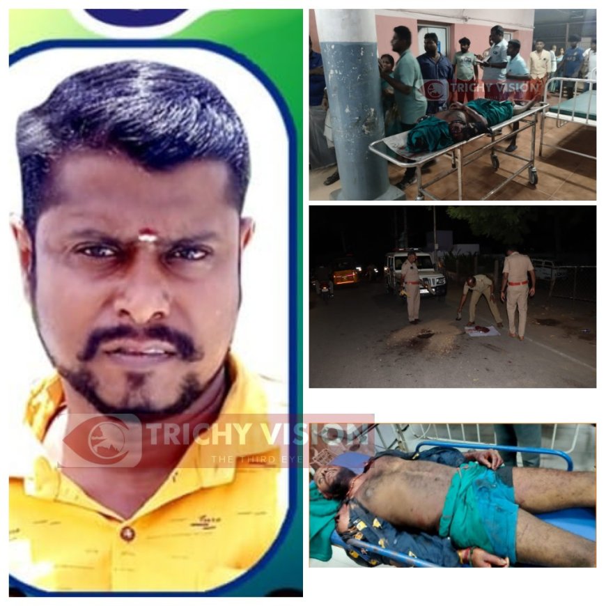 திருச்சி ஸ்ரீரங்கம் ரயில்வே பகுதியைச் சேர்ந்தவர் சுரேஷ் என்கின்ற ஆட்டுக்குட்டி சுரேஷ் (33). பூ வியாபாரியான இவர் பாமக ஸ்ரீரங்கம் பகுதி முன்னாள் தலைவர். இவர் தனது மனைவியுடன் ஏர்போர்ட் பகுதியில் உள்ள கோவிலில் சாமி தரிசனம் செய்துவிட்டு இரு சக்கர வாகனத்தில் வீடு திரும்பினார்.