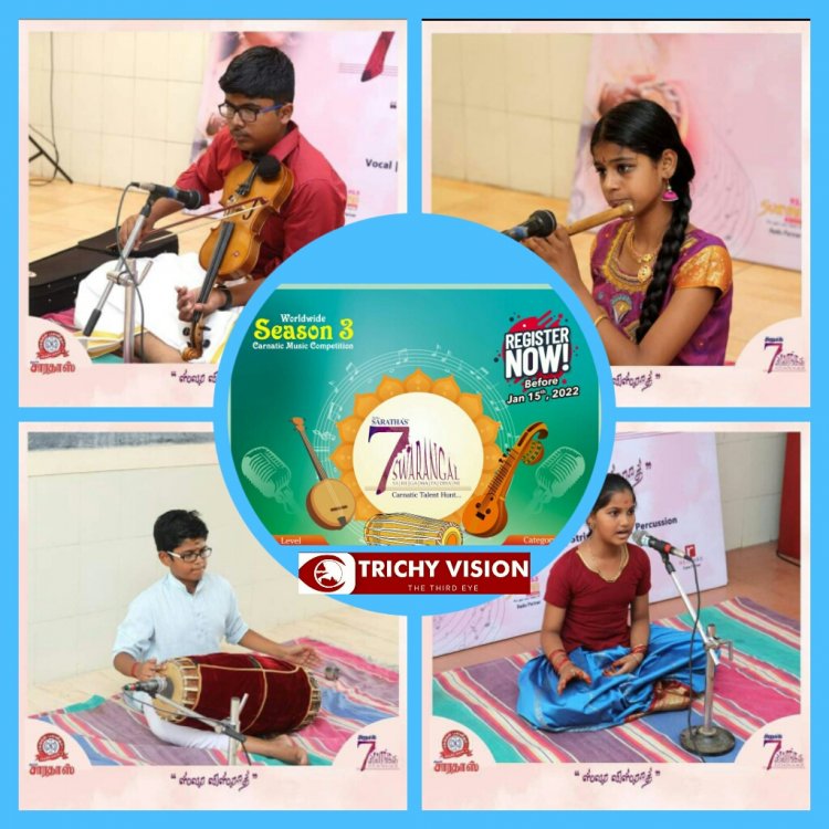 கர்நாடக இசையை உலகறிய செய்வதில் மிக முக்கிய நோக்கமாக குழந்தைகள் முதல் பெரியவர்கள் வரை கர்நாடக இசையில் அவர்களுடைய தனி திறமையை உலகிற்கு வழிகாட்டும் விதமாக 2018ஆம் ஆண்டு திருச்சி சாரதாஸ் வழங்கிய 7 ஸ்வரங்கள் நிகழ்ச்சி தமிழக மக்களிடையே பெரும் வரவேற்பை பெற்றது.
