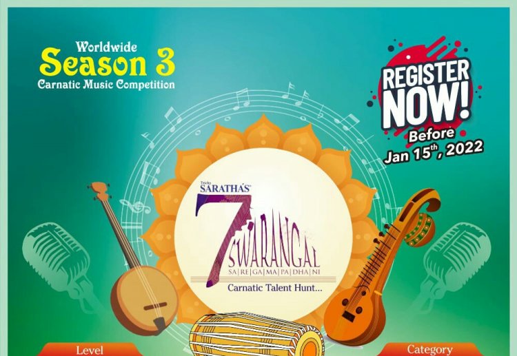 இப்போட்டியில் பங்கேற்க விரும்புபவர்கள் ஜனவரி 15.01.2022ஆம் தேதிக்குள் முன்பதிவு செய்து கொள்ளுதல் அவசியம். www.7swarangal.com என்ற இணையதளத்தில் முன்பதிவு செய்து கொள்ளலாம் .மேலும் பல விவரங்களும் இணையதளத்தின் மூலமே தெரிந்து கொள்ளலாம். திருச்சி சாரதாஸ் இந்நிகழ்ச்சியை உலகளவில் கொண்டு செல்வதில் பிரம்மாண்டமாக மூன்றாவது சீசன் நடைபெற உள்ளது.