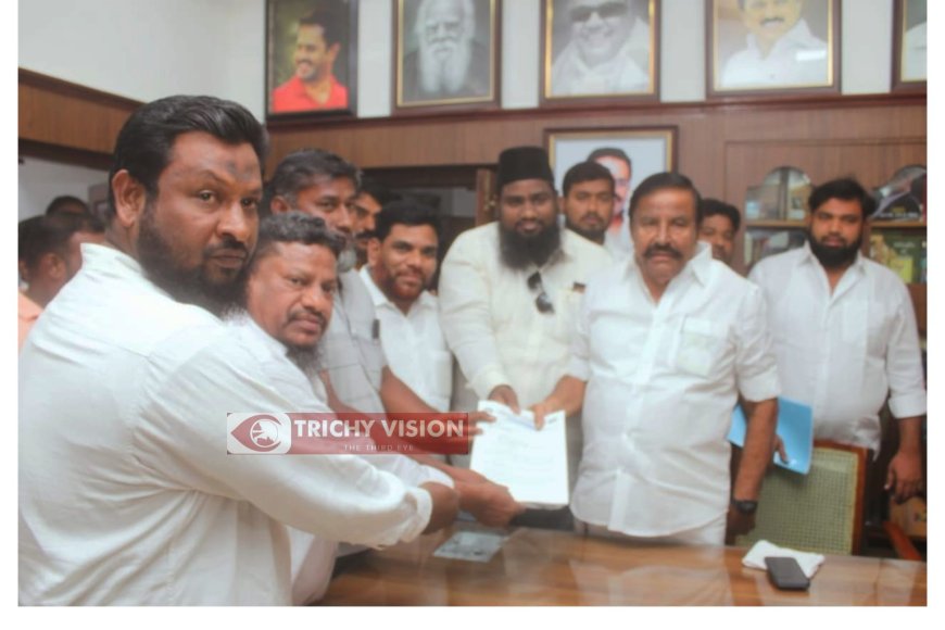 திருச்சி மேற்கு மாவட்ட மனிதநேய மக்கள் கட்சி சார்பில் திருச்சி மேற்கு தொகுதியில் குழுமிக்கரை பகுதியில் சிறுபான்மையினர் – அரசாணை (நிலை எண் – 15) (30.01.2024) அடிப்படையில் இஸ்லாமிய மக்களுக்கு தனி அடக்கஸ்தலம் அமைக்க வலியுறுத்தி நகராட்சி நிர்வாக துறை அமைச்சரை, மாவட்ட தலைவர் அ.பைஸ் அகமது MC தலைமையில் சந்தித்து கோரிக்கை மனு அளிக்கப்பட்டது.