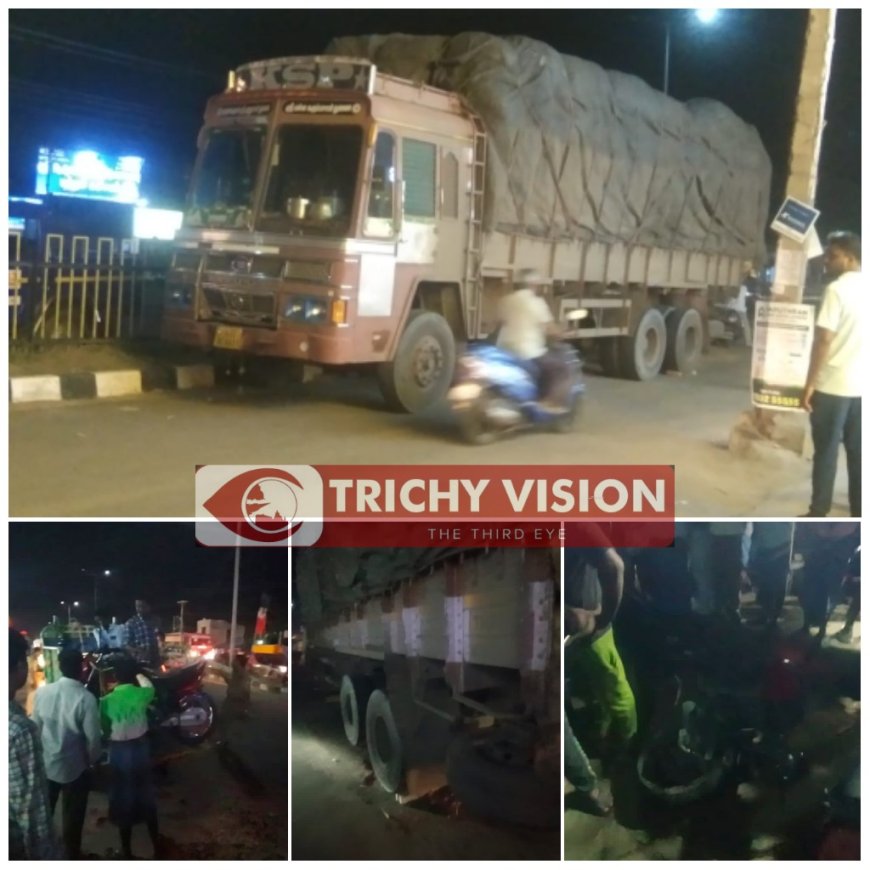 அப்போது கட்டுப்பாட்டை இழந்து திருச்சி – தஞ்சை தேசிய நெடுஞ்சாலையில் நிறுத்தி வைக்கப்பட்ட இரும்பு தடுப்பை தட்டிக்கொண்டு வேகமாக சாலையில் வந்த லாரி 7 இரு சக்கர வாகனத்தின் மீது மோதியது. இதில் ஒரு பெண் உட்பட மூன்று பேர் பலத்த காயமடைந்தனர்.