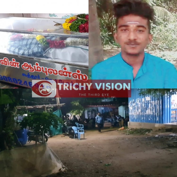 திருச்சி நம்பர் ஒன் டோல்கேட் அருகே உள்ள கூத்தூர் பகுதியை சேர்ந்தவர் செல்வமணி இவரது மகன் ஐயப்பன் (22). கூலித் தொழிலாளியான இவர் தனது வீட்டிற்கு அருகில் துக்கும் நிகழ்ச்சிக்கு சென்றார். அப்போது இறந்தவர் உடலை வைப்பதற்காக கொண்டுவரப்பட்ட மின் குளிர்சாதன பெட்டிக்கு மின் இணைப்பு கொடுக்க முயன்ற போது அவர் மீதும் அருகில் இருந்த இரண்டு பேர் மீதும் மின்சாரம் பாய்ந்தது.