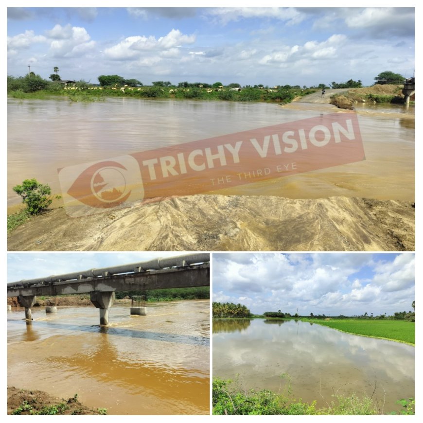 திருச்சி மாவட்டம், வாத்தலை அருகே அய்யாற்றின் குறுக்கே மனப்பாளையம் வேப்பந்துறை இரண்டு கிராமங்களை இணைக்கும் வகையில் புதிய பாலம் கட்டும் பணி நடைபெற்று வருகிறது. இதனால் ஆற்றின் குறுக்கே தற்காலிக தரைப்பாலம் அமைக்கப்பட்டு அதனை பொதுமக்கள் பயன்படுத்தி வந்தனர்.