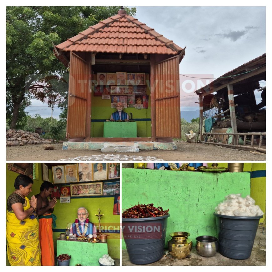 திருச்சி மாவட்டம், துறையூர் அருகே, எரகுடி கிராமத்தை சேர்ந்தவர் சங்கர். விவசாயியான அவர், துபாயில் வேலை பார்த்து வந்த அவர் சொந்த ஊர் திரும்பியதும் விவசாயத்தில் ஈடுபட்டார். பிரதமர் மோடியின் திட்டங்களால் பயனடைந்த நான், அவர் மீது கொண்ட ஈடுபாடு காரணமாக, என்னுடைய சொந்த நிலத்தில், கடந்த 2019ம் ஆண்டு இந்தியாவிலேயே முதல் முதலாக அவரது உருவச்சிலை அமைத்து, கோவில் கட்டினேன் என்றார்.