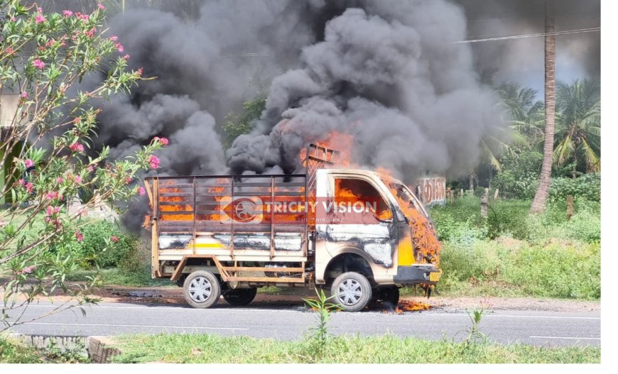 திருச்சி – திண்டுக்கல் தேசிய நெடுஞ்சாலையில் கரையாம்பட்டி என்ற இடத்தில் சாலையில் சென்று கொண்டிருந்த முத்தப்புடையன் பட்டியை சேர்ந்த சுப்பிரமணியன் என்பவருக்கு சொந்தமான டாடா ஏசி வாகனம் தீடிரென தீ பிடித்து எரிந்தது.
