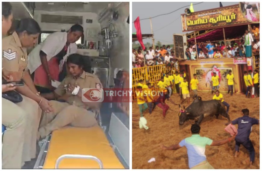 இந்த ஜல்லிக்கட்டு போட்டியை சூரியூர் மற்றும் அதை சுற்றி உள்ள ஊர்களைச் சேர்ந்த ஏராளமான பொதுமக்கள் கண்டு களிக்கும் விதமாக கேலரிகள் மற்றும் தடுப்பு வேலியை அருகில் வாகனங்களை பெரிய சூரியூர் ஜல்லிக்கட்டு விழா குழுவினர் சார்பில் நிறுத்தப்பட்டுள்ளது. இதனை தொடர்ந்து சூரியூர் ஜல்லிக்கட்டில் தடுப்பு வேலி அருகே பாதுகாப்பு பணியில் ஈடுபட்டிருந்த திருவெறும்பூர் காவல் நிலைய காவலர் போக்குவரத்து பிரிவு எஸ்.ஐ சுரேஷ் காலில் காயம் ஏற்பட்டது. உடனே ஆகிலிருந்த முதலுதவி சிகிச்சை மையத்திற்கு அழைத்துச் செல்லப்பட்டு சிகிச்சை அளிக்கப்பட்டது. மேலும் ஜல்லிக்கட்டு பாதுகாப்பு பணியில் இருந்த பெரம்பலூர் காவல்நிலைய ஏட்டு கீதாவிற்கு (40) நெஞ்சுவலி ஏற்பட்டது. உடனே சிகிச்சைக்காக திருச்சி அரசு மருத்துவமனைக்கு அனுப்பிவைக்கபட்டார்.