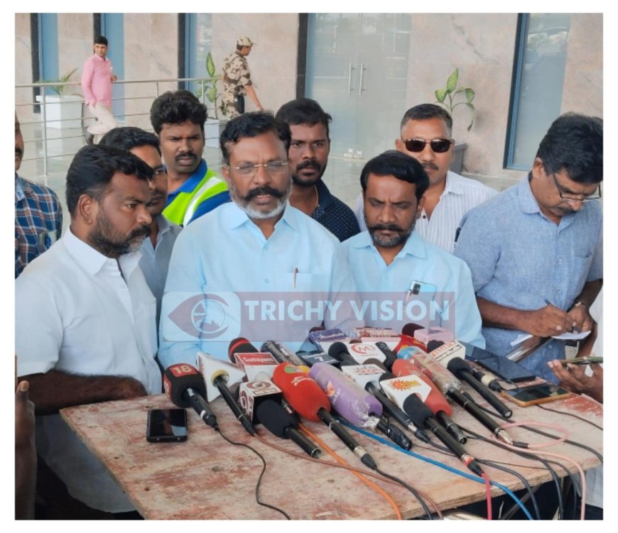கும்பகோணத்தில் நடைபெற உள்ள விடுதலை சிறுத்தைகள் கட்சியின் நிர்வாகி திருமணத்தில் கலந்து கொள்வதற்காக விசிக தலைவர் திருமாவளவன் சென்னையிலிருந்து விமானம் மூலம் திருச்சி விமான நிலையத்திற்கு வருகை தந்தார்.