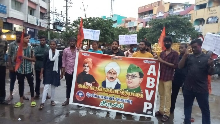 பெண்களுக்கு எதிரான பாலியல் துன்புறுத்தல்களுக்கு எதிராகவும் கோவை பள்ளி மாணவி மரணத்தை சிபிஐ விசாரணைக்கு மாற்ற கோரியும் ABVP திருச்சி மாவட்ட கிளை சார்பாக, நேற்று சத்திரம் பேருந்து நிலையம் அண்ணா சிலை அருகே கண்டன ஆர்ப்பாட்டம் நடைபெற்றது.