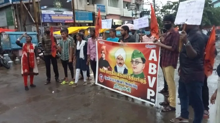 ஆர்பாட்டத்தில் ABVP தென் தமிழக மாநில செயலாளர் சுசீலா மற்றும் ABVP திருச்சி மாவட்ட ஒருங்கிணைப்பாளர் அஸ்வின், ABVP தென் தமிழக மாநில செயற்குழு உறுப்பினர் ஹேமா சூரியா, மாநகர இணை செயலாளர் சந்தோஷ்குமார் போராட்ட ஒருங்கிணைப்பாளர் விக்னேஷ்வரன் மற்றும் மாநில செயற்குழு உறுப்பினர்கள், மாவட்ட ,மாநகர பொறுப்பாளர்கள், மாணவத் தலைவர்கள் கலந்து கொண்டு சிறப்பித்தனர்.