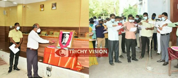 இதே போன்று திருச்சிராப்பள்ளி மாநகராட்சி மைய அலுவலக வளாகத்தில் மாநகராட்சி ஆணையர் ப.மு.நெ.முஜிபுர் ரகுமான் தலைமையில் தந்தை பெரியார் படத்திற்கு அதிகாரிகள் மலர் தூவி, சமூக நீதி நாள் உறுதிமொழியை ஆணையர் வாசிக்க மாநகராட்சி அலுவலர்கள் மற்றும் பணியாளர்கள் எடுத்துக்கொண்டார்கள்.