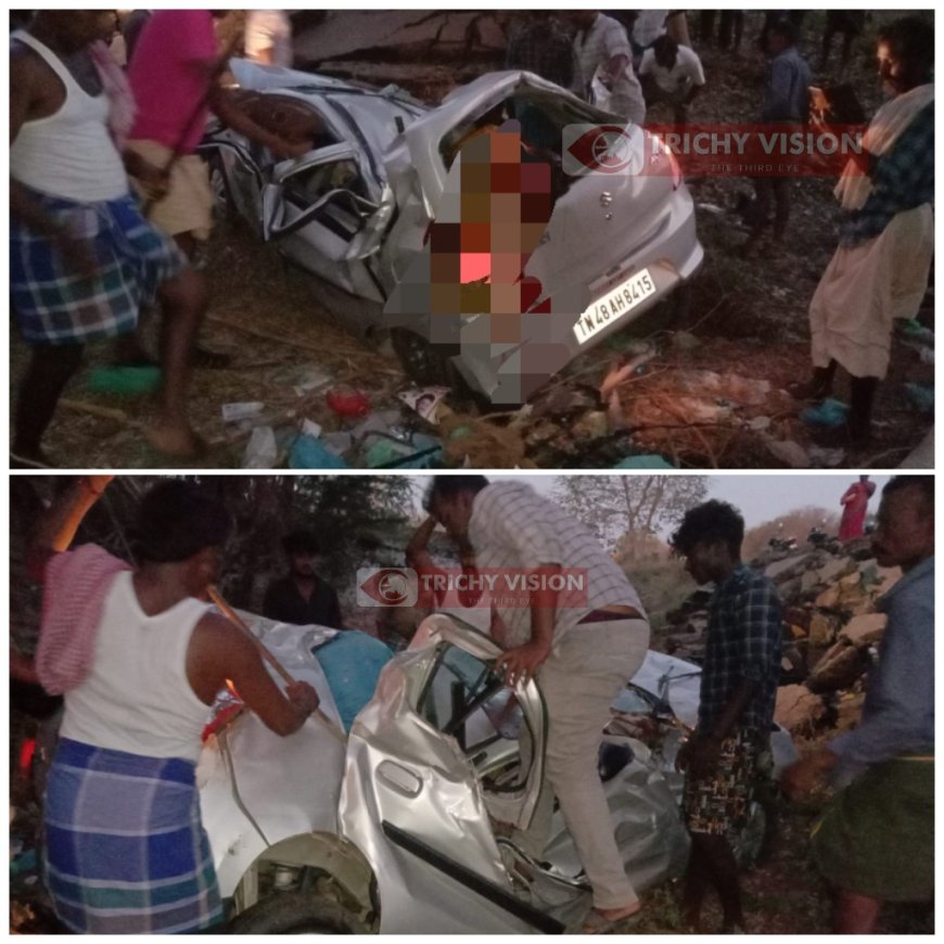 அப்போது மதுரை – திருச்சி தேசிய நெடுஞ்சாலை மணப்பாறை அருகே முக்கன் பாலம் பகுதியில் சென்று கொண்டிருந்தபோது கார் கட்டுப்பாட்டை இழந்து நெடுஞ்சாலையின் ஓரம் இருந்த மரத்தில் சென்று மோதி விபத்துக்குள்ளானது. இந்த விபத்தில் காரை ஒட்டி வந்த அர்ஜுனன் மற்றும் அவரது மனைவி மலர்விழி ஆகிய இருவருக்கும் பலத்த காயம் ஏற்பட்டு சம்பவ இடத்திலேயே உயிரிழந்தனர்.