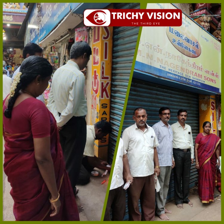 திருச்சி மலைக்கோட்டை தாயுமான சுவாமி திருக்கோவிலுக்கு சொந்தமான இடத்தில் வணிகம் செய்து வரும் நாகேந்திரன் சன்ஸ் கடை உரிமையாளர்கள் வாடகை செலுத்தாததால் இணை ஆணையர் அறிவுரையின்படி இன்று பூட்டப்பட்டு திருச்சி உதவி ஆணையரால் உத்தரவிடபட்டது.