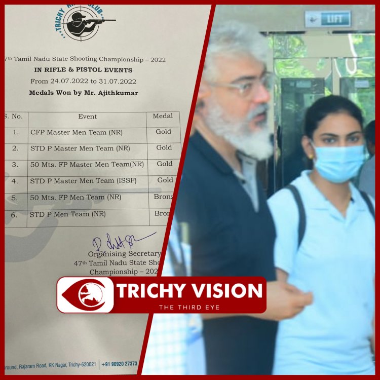 திருச்சியில் 47வது மாநில அளவிலான துப்பாக்கி சூடும் போட்டி திருச்சி மாநகர கே.க.நகர் ஆயுதப்படை வளாகத்தில் உள்ள ரைபிள் கிளப்பில் கடந்த 24.07.2022 முதல் நடைபெற்று வருகிறது. 27ஆம் தேதி நடிகர் அஜித்குமார் மாஸ்டர் பிரிவில் பங்கேற்றார்.