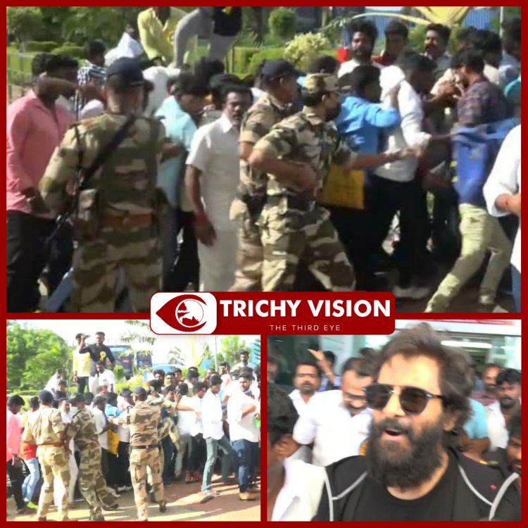 திருச்சி விமான நிலையத்தில் நடிகர் விக்ரம் ரசிகர்கள் மீது சி.ஐ.எஸ்.எப் வீரர்கள் தடியடி – விரட்டியடிப்பு