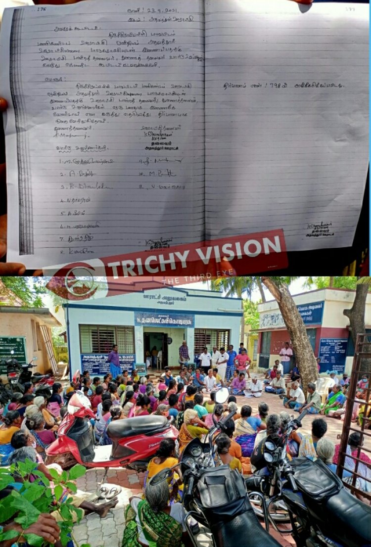 இதன் ஒரு பகுதியாக மணிகண்டம் ஒன்றியத்துக்கு உட்பட்ட அதவத்தூர் ஊராட்சியை மாநகராட்சி ஒருங்கிணைக்க கூடாது இதற்கு ஊராட்சி தலைவர், துணைத்தலைவர், வார்டு உறுப்பினர்கள் அனைவரும் ஊராட்சியில் மாநகராட்சியோடு இணைக்க மாட்டோம் என ஒருமனதாக தீர்மானம் நிறைவேற்றி தரக்கோரி நூற்றுக்கும் மேற்பட்ட கிராம மக்கள் ஊராட்சி மன்ற அலுவலகத்தில் தர்ணா போராட்டத்தில் ஈடுபட்டனர்.