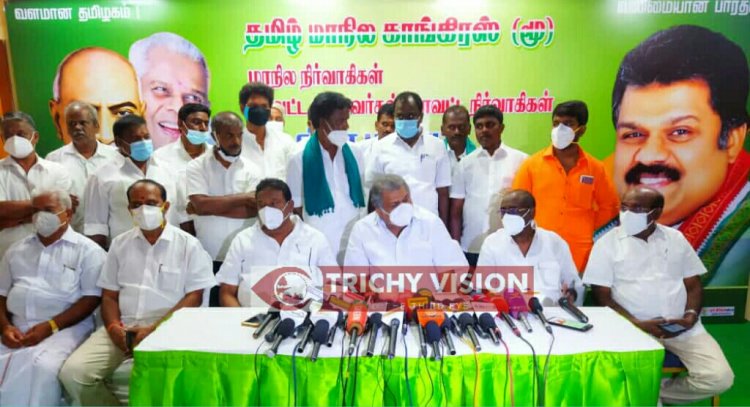 தமிழ் மாநில காங்கிரஸ் கட்சியின் மாநில நிர்வாகிகள், மாவட்ட தலைவர்கள் மற்றும் மாவட்ட நிர்வாகிகள் கலந்தாய்வு கூட்டம் மாநில தலைவர் ஜிகே வாசன் தலைமையில் திருச்சியில் நடைபெற்றது. இக்கூட்டத்திற்கு முன்னதாக செய்தியாளர்களை சந்தித்த ஜி.கே.வாசன்… தேர்தலுக்கு பின்னர் முதல் முறையாக கட்சி நிர்வாகிகள் சந்திப்பு நடைபெறுகிறது.