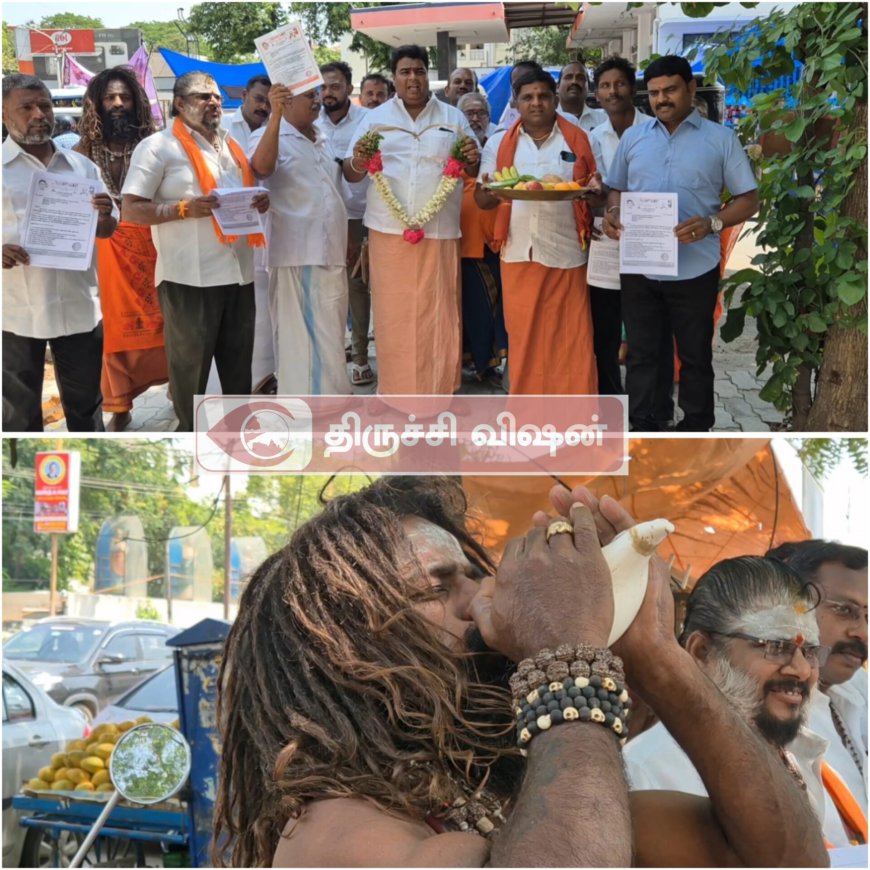 இன்றுவரை எவ்வித நடவடிக்கையும் எடுக்கவில்லை. அந்த காரணத்தால் இன்று தட்டில் பழம் பூ மாலை வைத்து சங்கு ஊதி தொல்லியல் அலுவலகத்திற்கு மனு கொடுக்க வந்திருந்தோம். தொல்லியல் துறை உயர் அதிகாரி ராகுல் அவர்கள் இதற்குரிய நடவடிக்கையை நாளை முதலே தொடங்குகிறேன் என்று உறுதி அளித்தார். நாளை காலையில் வந்து மனுவில் உள்ள