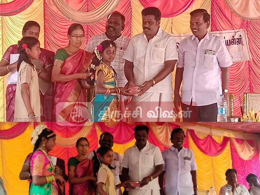 திருச்சி மாவட்டம் லால்குடி அருகே புள்ளம்பாடி ஒன்றியம் ஆலம்பாக்கம் ஊராட்சியில் உள்ள ஊராட்சி ஒன்றிய நடுநிலைப்பள்ளியில் ஆண்டு விழா,இலக்கியமன்ற விழா மற்றும் விளையாட்டு விழா என முப்பெரும் விழா பள்ளி வளாகத்தில் பள்ளி தலைமை ஆசிரியர் லலிதா தலைமையில் நடைபெற்றது.