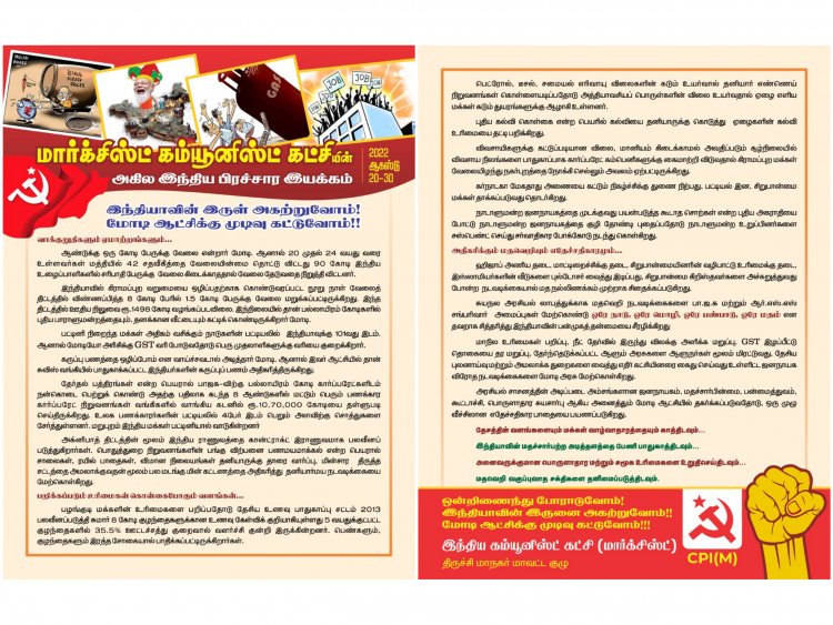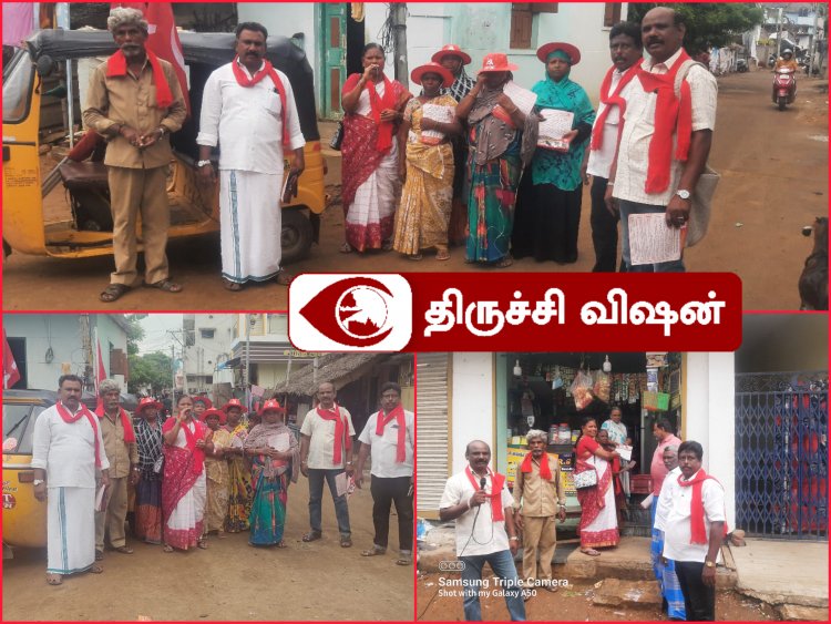 மார்க்சிஸ்ட் கம்யூனிஸ்ட் கட்சியின்அகில இந்திய பிரச்சார இயக்கம், இன்று 31.08.2022, திருச்சி, ஜங்ஷன் பகுதி, வண்ணாரப்பேட்டை,கூணி பஜார் ,ஆகிய இடங்களில் இந்தியாவின் இருளை அகற்றுவோம்! மோடி ஆட்சிக்கு முடிவு கட்டுவோம் !! மக்கள். சந்திப்பு பிரச்சார இயக்கம், நடைபெற்றது.