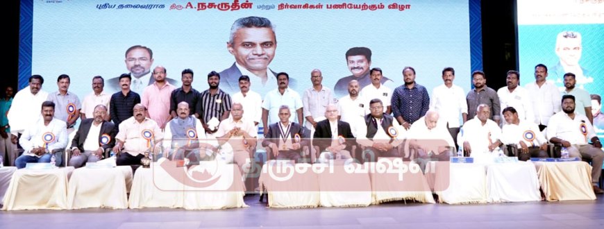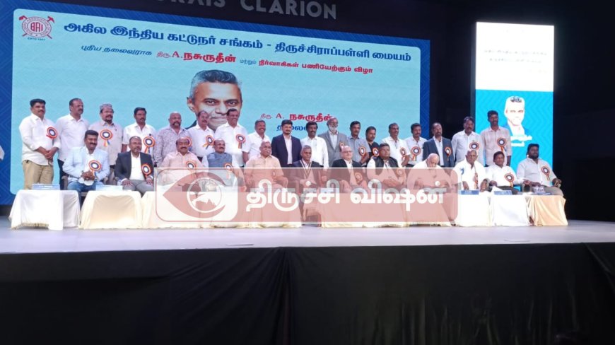 அகில இந்திய கட்டுமான சங்கம் திருச்சிராப்பள்ளி மையம் வருடம் 2025-26 காண தலைவர் நஸ்ருதீன் அவர்கள் செயலாளர் ஜெயராமன் அவர்கள் பொருளாளராக விஸ்வநாதன் அவர்கள் மற்றும் செயற்குழு உறுப்பினர்கள் பதவியேற்பு விழா