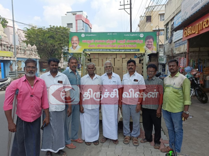 இந்த புயலால் சென்னை முழுவதும் மழை நீரால் சூழப்பட்டுள்ளது. இதனால் அங்குள்ள மக்கள் பெரிதும் பாதிக்கப்பட்டுள்ளனர். ஏழை மக்களுக்கு தேவையான நிவாரண பொருட்களை தன்னார்வத் தொண்டு நிறுவனங்கள் வழங்கி வருகின்றனர். இதன் ஒரு பகுதியாக சென்னையில் புயலால் பாதிக்கப்பட்ட ஏழை மக்களுக்கு உதவும் வகையில் திருச்சி வயலூர் சாலை புத்தூர் பகுதி அனைத்து கடை வியாபாரிகள் நல சங்கத்தினர் மினி லாரி முழுவதும் பிஸ்கட், உணவுப் பொருட்களை அனுப்பி வைத்தனர்.