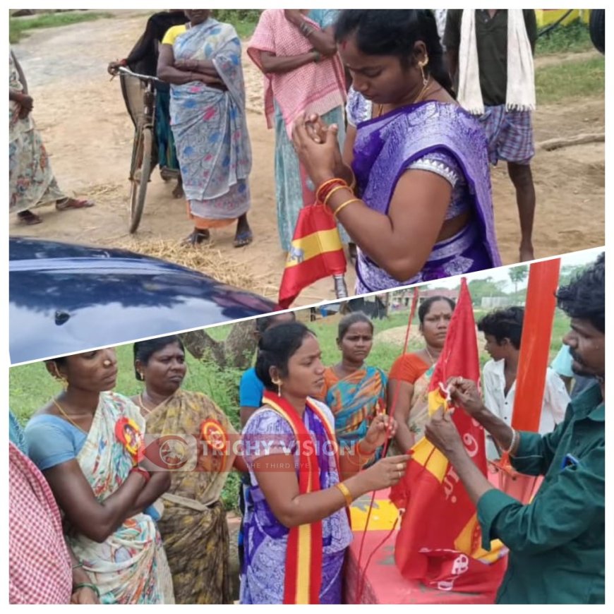 தற்போது விஜய் நடத்தி வரும் கட்சியில் தம்மை இணைத்துக் கொண்டு அண்மையில் விக்கிரவாண்டியில் நடைபெற்ற மாநாட்டிலும் மகளிர் அணி நிர்வாகிகளை அழைத்துக் கொண்டு சென்றார். அதனைத் தொடர்ந்து பல்வேறு நிகழ்ச்சிகளில் பங்கேற்று கழக பணிகளை தீவிரமாக மேற்கொண்டு வந்தார். இந்த நிலையில் அரியலூர் மாவட்டத்தில் பல்வேறு இடங்களில் விஜய் கட்சியின் கொடி ஏற்றும் நிகழ்ச்சி நடைபெற்றது.