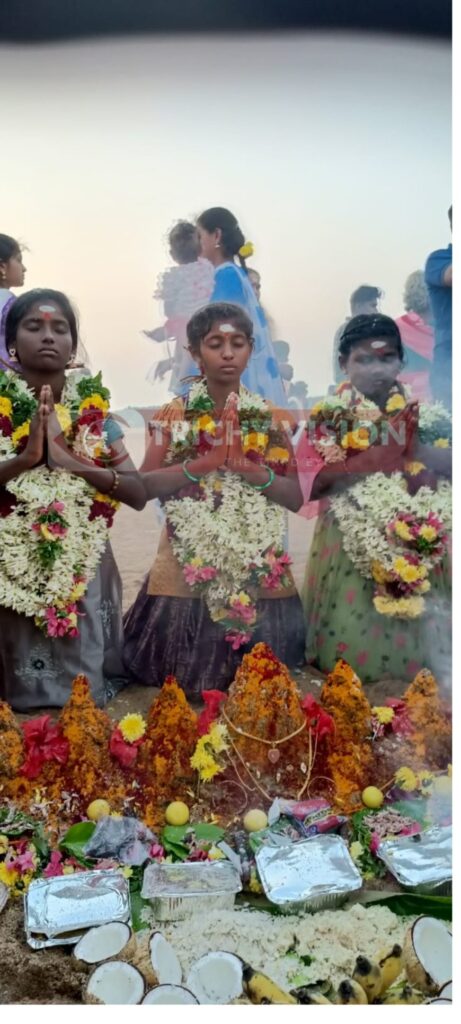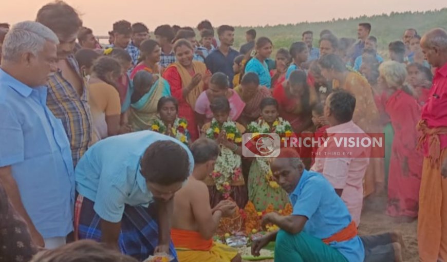 அந்த சிறுமிகள் மாரியம்மன் கோவிலில் விரதம் மேற்கொண்டு வந்தனர். நேற்று அந்த மூன்று சிறுமிகளையும், மேளதாளங்கள் முழங்க புத்தாடை அணிவித்து தங்க நகை ஆபரணங்கள் அணிவித்து முளைப்பாரி, நெல் விதைகள் தானியங்கள் ஆகியவற்றை எடுத்துக் கொண்டு கிராம மக்கள் ஊர்வலமாக காவிரி ஆற்றுக்கு அழைத்து வந்தனர்.