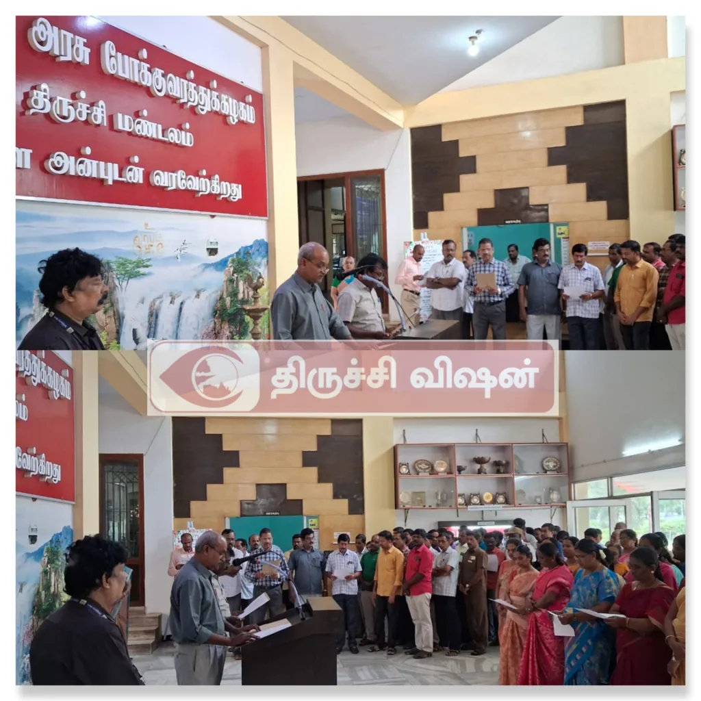 தமிழ்நாடு அரசு போக்குவரத்து கழகம் கும்பகோணம் கோட்டம் திருச்சி மண்டலத்தின் சார்பில் போதைப்பொருள் எதிர்ப்பு உறுதிமொழி துணை மேலாளர் (பணியாளர்) ஆர். இராமநாதன் அவர்கள் முன்னிலையில் அனைத்து போக்குவரத்து கழக பணியாளர்கள் உறுதிமொழி இன்று 18.11.2025 எடுத்துக் கொண்டனர். உறுதிமொழி ஏற்கும் நிகழ்ச்சியில் துணை மேலாளர்கள் ஜூலியஸ் அற்புத ராயன் (வழிவசூல் தாள்) புகழேந்தி ராஜ்( தொழில்நுட்பம்)