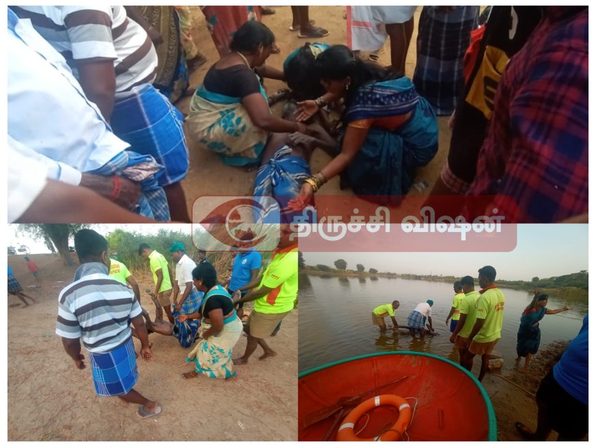 பின்னர் அங்குள்ள கீழ் ஏரியில் உள்ள தண்ணீரில் மருதமுத்து இறங்கிய போது ஏரியில் மண் அதிகளவில் அள்ளியதால் நீரில் மூழ்கி முதியவர் மாயமானார். தகவல் அறிந்த லால்குடி தீயணைப்பு சிறப்பு நிலைய அலுவலர்கள் பிரபு, இளங்கோ தலைமையில் வீரர்கள் அசோக், சுரேஷ், மணிகண்டன், விஜய் அமிர்தராஜ், மனோஜ் குமார், பிரபு, சாகுல் உள்ளிட்டோர் சம்பவ இடத்திற்க்கு சென்று நீரில் மூழ்கி மாயமான முதியவர் மருதைமுத்துவை சடலமாக மீட்டனர்.