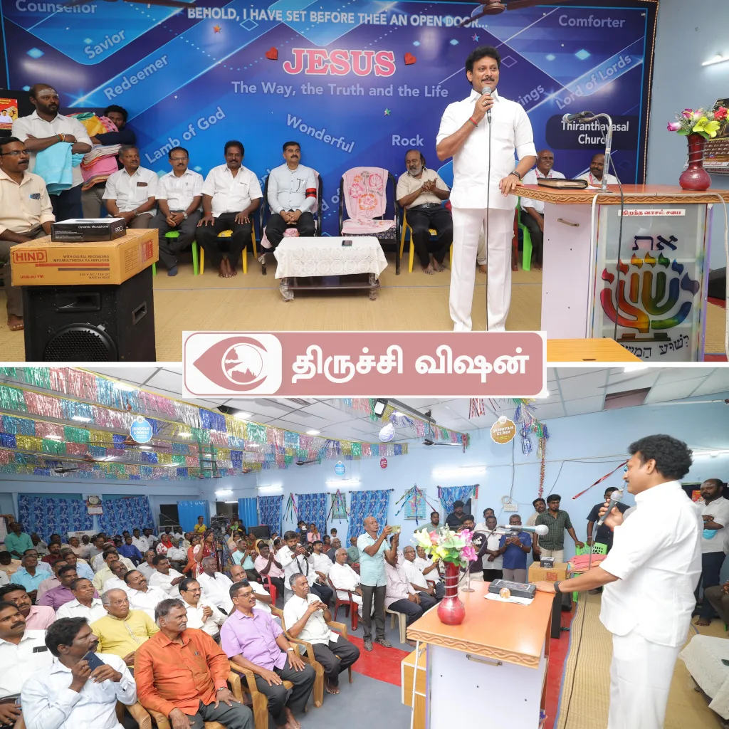 திருவெறும்பூர் தொகுதி மதச்சார்பற்ற கூட்டணியின் வேட்பாளர் அன்பில் மகேஸ் பொய்யாமொழி, துவாக்குடி வ.உ.சி நகரில் உள்ள ‘திறந்த வாசல்’ சபையில் தாலுகா போதகர்கள் ஐக்கியத்தினரைச் சந்தித்து வாக்கு சேகரித்தார்.