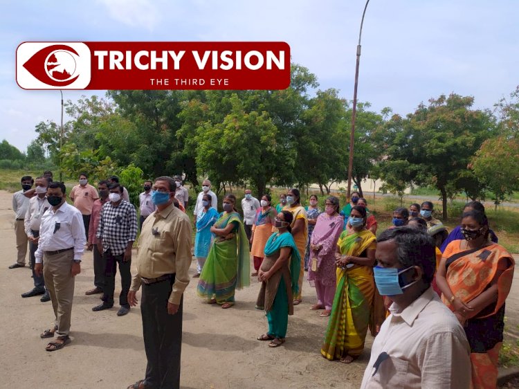 திருச்சி அண்ணா பல்கலைக்கழக பேராசிரியர்கள் கருப்பு பேட்ஜ் அணிந்து பணிபுரியும் போராட்டத்தில் ஈடுபட்டுள்ளனர்.