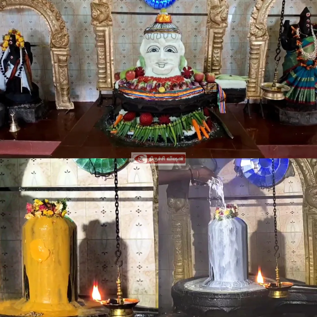 தொடர்ந்து மூலவருக்கு அன்னம், காய்கறிகள் மற்றும் வண்ண மலர்கள் கொண்டு சிவபெருமான் உருவ வடிவில் அலங்கரிக்கப்பட்டு மகாதீபாராதனை நடைபெற்றது.