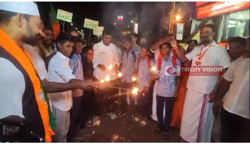 திருச்சி மாநகர் மாவட்ட பாஜக தலைவர் ராஜசேகர் தலைமையிலான கட்சியின் நிர்வாகிகள் இதற்கான ஏற்பாடுகளை செய்திருந்தனர். முன்னதாக திருச்சி கோட்டை ரயில் நிலையம் அருகே நடை பயணம் மேற்கொண்டு இருந்த பொழுது அப்பகுதியாக வந்த பள்ளி மாணவர்களை பாஜக மாநில தலைவர் அண்ணாமலை சந்தித்தார். அவர்களுக்கு கம்பி மத்தாப்புகளை வழங்கி அவர்களுடன் இணைந்து கம்பி கொளுத்தி மகிழ்ந்தார். மேலும் அவர்களுக்கு மத்தாப்புகளும் வழங்கப்பட்டன.