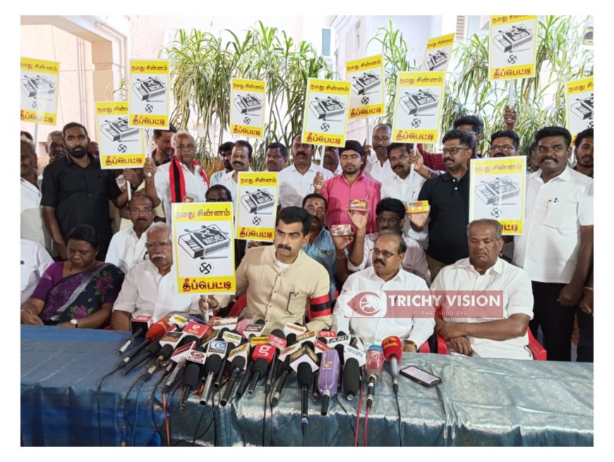திருச்சி நாடாளுமன்ற தொகுதியில் மதிமுக, அதிமுக, அமமுக, நாம் தமிழர் ஆகிய கட்சியை சேர்ந்த வேட்பாளர்கள் களத்தில் உள்ளனர். இவர்கள் கடந்த 27ஆம் தேதி வேட்புமனு தாக்கல் செய்தனர். தொடர்ந்து மறுநாள் 28ஆம் தேதி வேட்பு மனு மீதான பரிசீலனை நடைபெற்றது. அதனை தொடர்ந்து இன்று வேட்பு மனு திரும்ப பெறுதல் அறிவிக்கப்பட்டிருந்தது. மூன்று மணி வரை வேட்ப்பு மனுவை யாரும் திரும்ப பெறாததால் வேட்பாளர்களுக்கு சின்னம் மாவட்ட தேர்தல் அலுவலர் சின்னம் ஒதுக்கினார்.