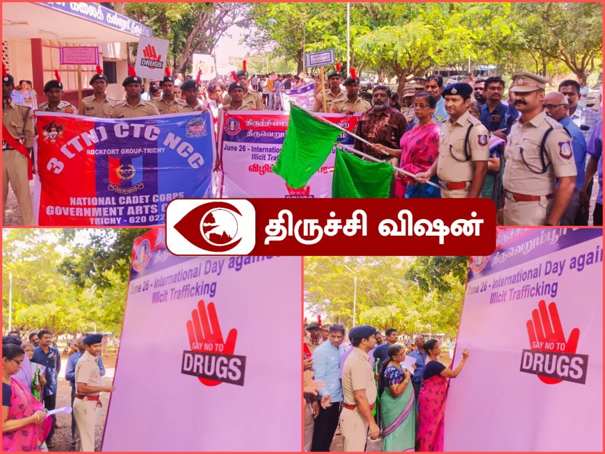 போதைப் பொருட்கள் ஒழிப்பு விழிப்புணர்வு பேரணி 26.6.23 காலை 11 மணிக்கு துவாக்குடி அரசு கல்லூரியில் திருச்சி மாவட்ட காவல் கண்காணிப்பாளர் சுஜித்குமார் துவக்கி வைத்தார்.